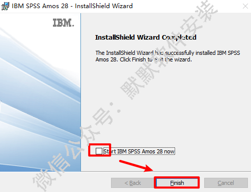 8.取消勾选Start IBM SPSS Amos 28 now,点击“Finish”