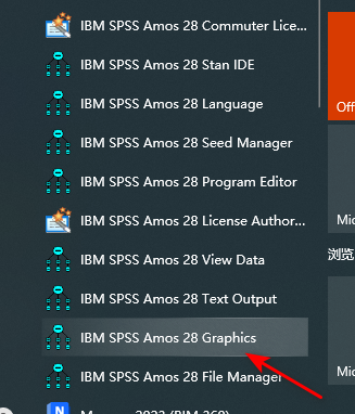 12.在开始菜单,找到IBM SPSS Amos 28 Graphics并打开软件
