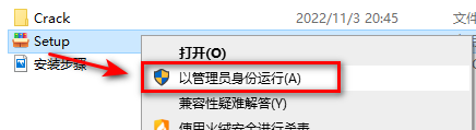 2.选中Setup,鼠标右击选择“以管理员身份运行”