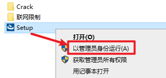 2.打开解压好的文件有,找到并选中Setup,右键选择“以管理员身份运行”
