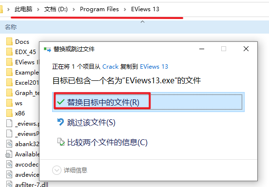 18.粘贴到软件安装路径下,选择“替换目标中的文件”