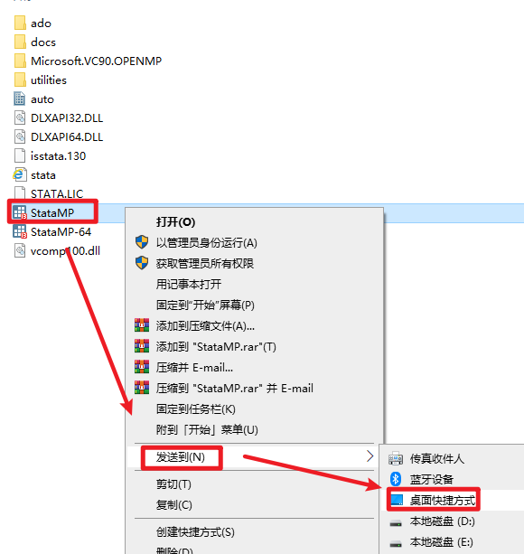 14.在当前文件夹找到并选中“StataMP“文件,右键选择“发送到—桌面快捷方式”