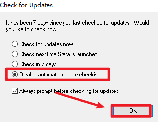 16.勾选“Disable automatic…“,取消勾选“Always…“,点击“OK“