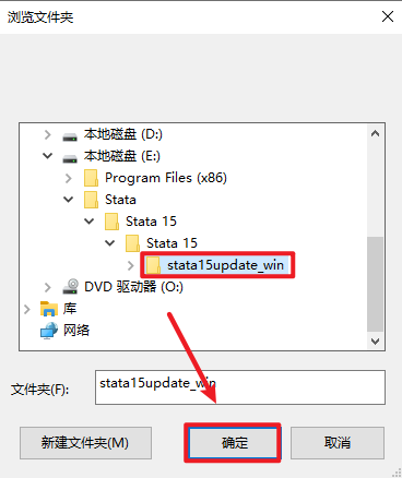 19.找到并打开之前解压的“Stata 15”文件夹,选中“tata15update_win”文件夹,点击“确定”
