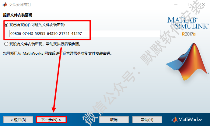 6.密钥输入【09806-07443-53955-64350-21751-41297】,点击“下一步”