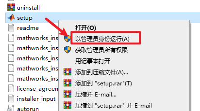 3.选中setup,鼠标右键选择“以管理员身份运行”