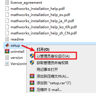 3.选中setup,鼠标右键选择“以管理员身份运行”