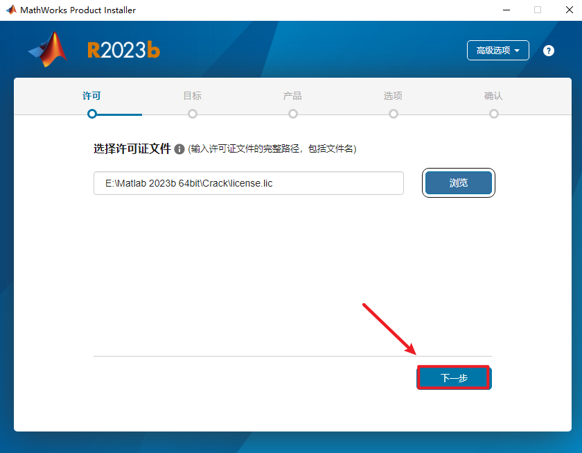 8.在解压后的文件夹Matlab 2023b文件夹中的【Crack】文件夹,选中license.lic文件,点击“打开”