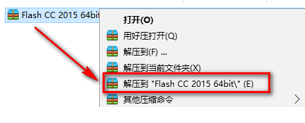 1.找到并选中下载的安装包,右键选择“解压到 Flash CC 2015 64bit”