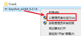 3.选中“keyshot_win64_9.3.14”安装程序,鼠标右键选择“以管理员身份运行”