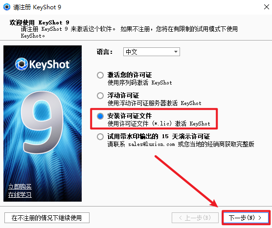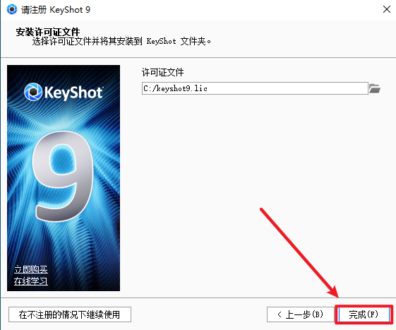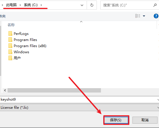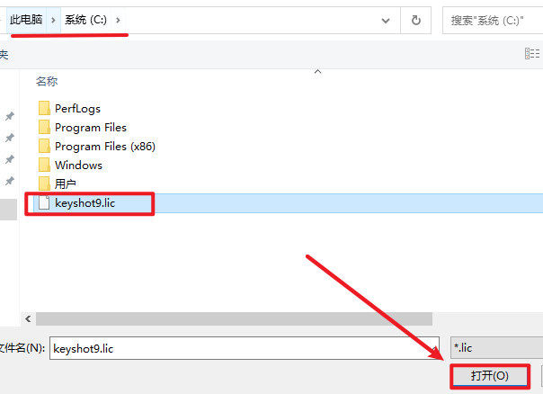 21.点击“C”盘,找到”keyshot9.lic“,点击“打开”