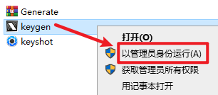 15.返回“Crack”文件夹,选中“Keygen”注册机,鼠标右键点击“以管理员身份运行”