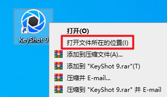 13.在桌面上找到”keyshot 9“软件图标,鼠标右键点击“打开文件所在位置”