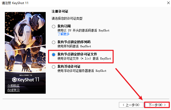 21.选择“我有节点锁定的许可证文件”,点击“下一步”