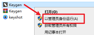 15.返回打开的“Crack”文件夹,选中“Keygen”注册机,鼠标右键点击“以管理员身份运行”