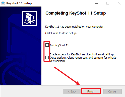 10.取消勾选两个选项,点击”Finish“