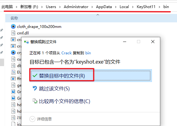 14.在软件安装路径处,粘贴刚才复制的文件,并选择“替换目标中的文件”
