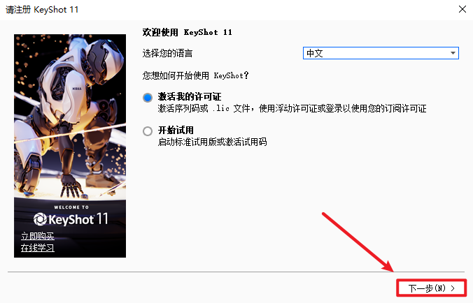 20.选择“激活我的许可证”,点击“下一步”