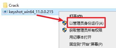 3.选中“keyshot_win64_11.0.0.215.exe”安装程序,鼠标右键点击“以管理员身份运行”