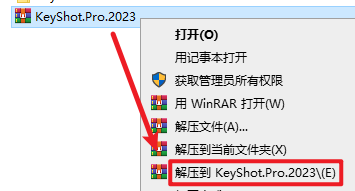 1.选中下载的压缩包,然后鼠标右键选择“解压到 KeyShot.Pro.2023”
