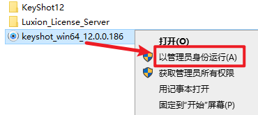 3.鼠标右键点击“keyshot_win64_12.0.0.186”安装程序,选择“以管理员身份运行”
