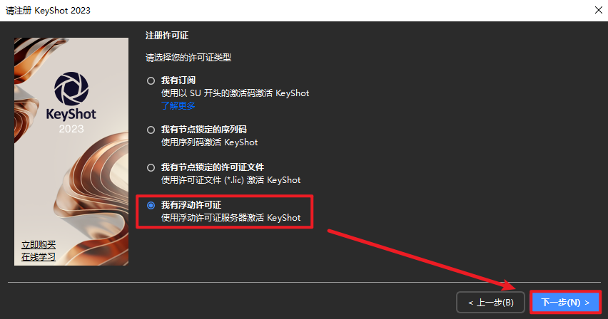 22.选择“我有浮动许可证文件”,点击“下一步”