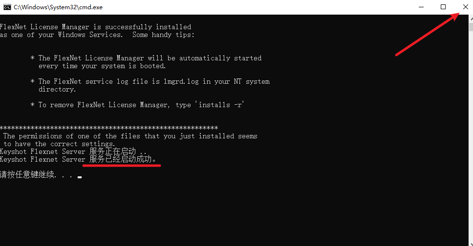 14.提示“服务已经启动成功“,点击右上角的关闭按钮
