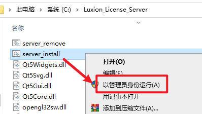 13.双击打开复制过来的“Luxion_License_Server”文件夹,鼠标右键点击“server_install.bat”选择“以管理员身份运行”(运行前请关闭电脑中的杀毒软件)