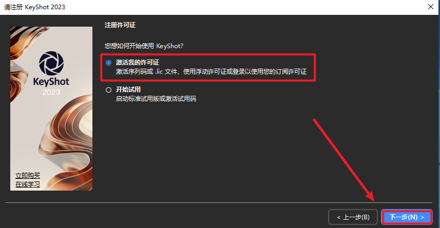 21.选择“激活我的许可证”,点击“下一步”