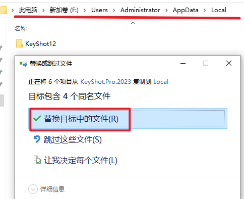 18.粘贴复制的文件夹到该路径下,选择“替换目标中的文件”