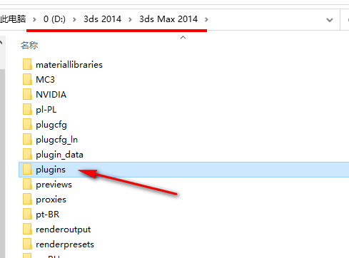 13.找到3ds max的安装路径,找到并双击打开【plugins】文件夹