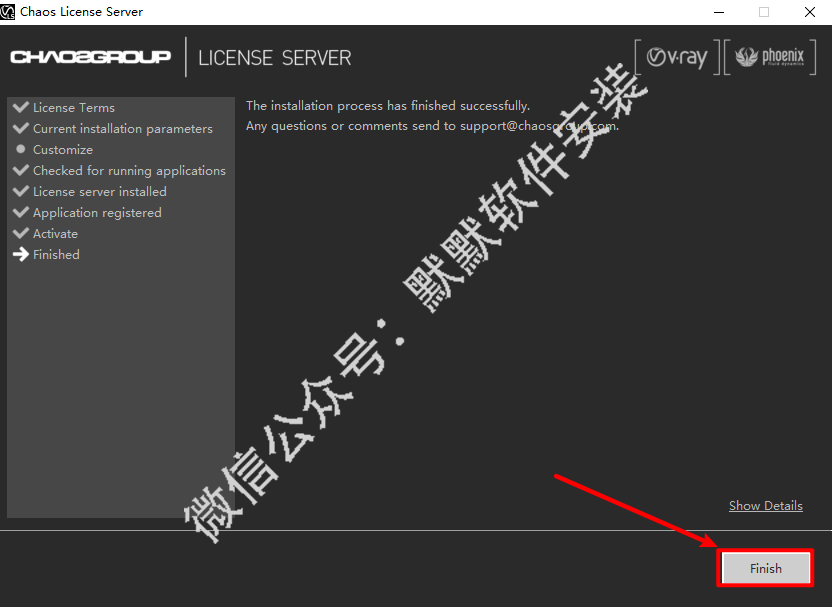 6.取消勾选Visit our support site和Openthe changelog file after the installation,点击“Finish”