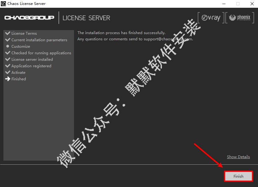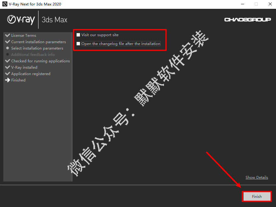 6.取消勾选Visit our support site和Openthe changelog file after the installation,点击“Finish”
