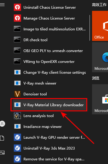 15.在开始菜单中,找到并打开“V-Ray Material Library downloader”