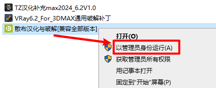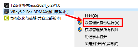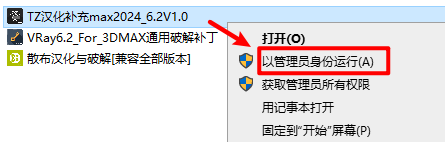 9.返回“Crack”文件夹,选中“TZ汉化补充max2024_6.2V1.0.exe“右键选择“以管理员身份运行”