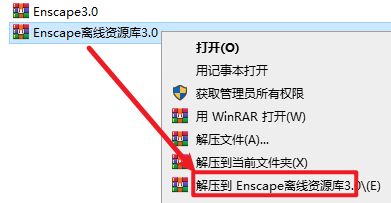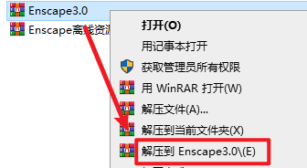1、选中下载好的安装包,右键选择解压到“Enscape3.0”