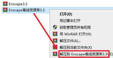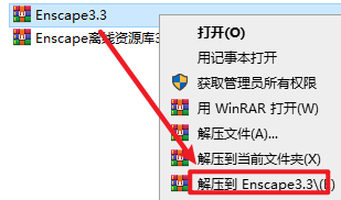 1、选中下载好的安装包,右键选择“解压到 Enscape3.3”