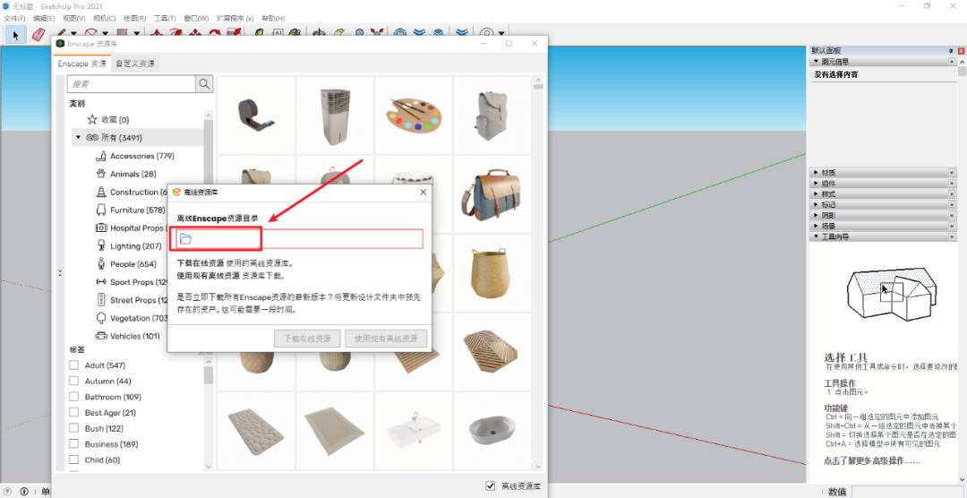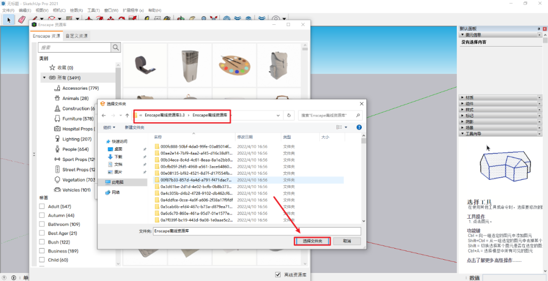8、在跳出的框内找到安装文件夹下的“Enscape离线资源库”,点击选择文件夹