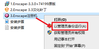 14、返回安装文件夹,选中 “3.Enscape注册机”,右键选择“以管理员身份运行”