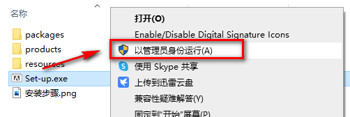 3.找到并选中Set-up,鼠标右键选择“以管理员身份运行”
