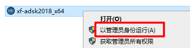 16.选中xf-adesk2018_x64,鼠标右键选择“以管理员身份运行”