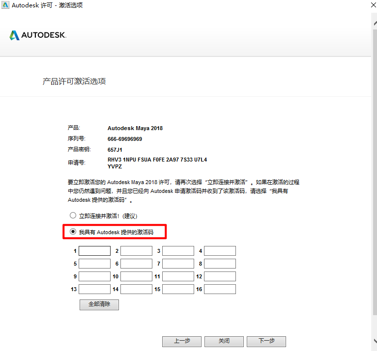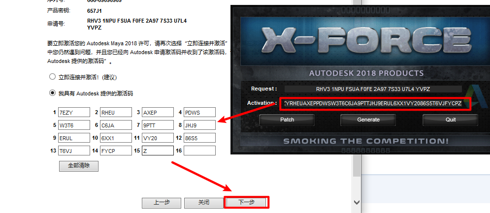 19.将生成的激活码复制到激活码输入框,点击“下一步”