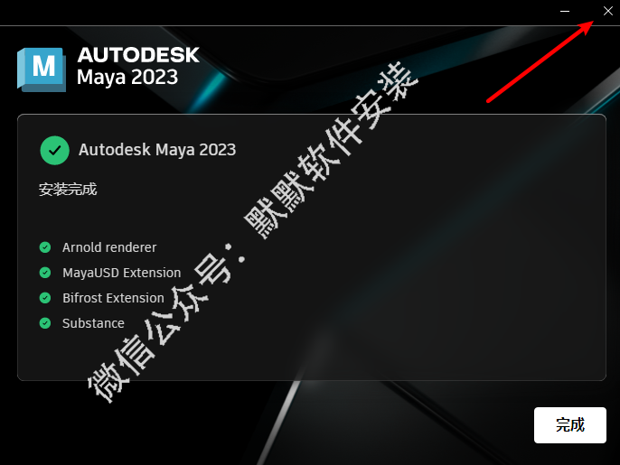 8.安装完成,点击右上角的“×”,关闭该界面