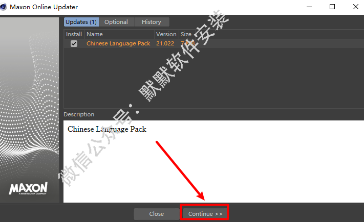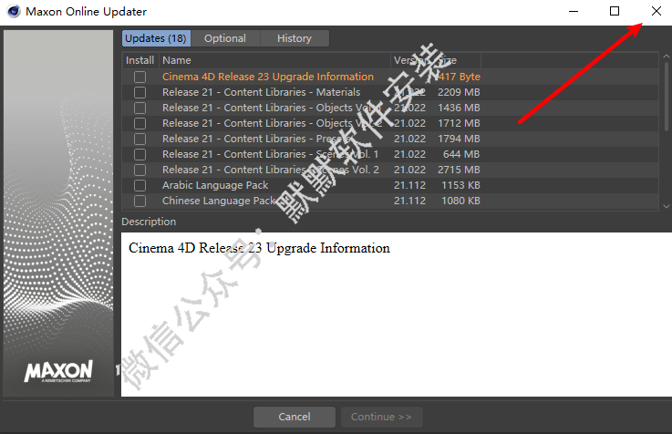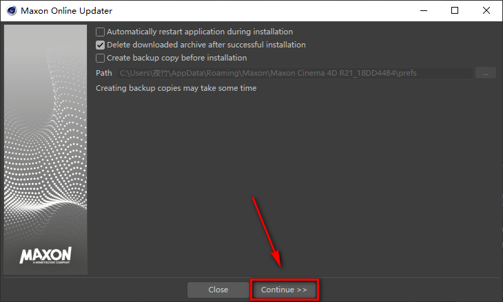 18.将CHINESE_21022_20190827.c4dupdate文件,拖到C4D中