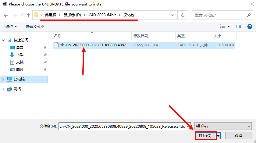 14.找到解压后的安装包下的汉化包,点击“打开”