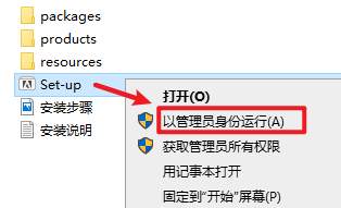 2.打开解压好的文件夹,选中“Setup”右键选择“以管理员身份运行”