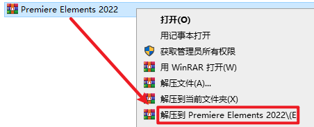 1.选中下载的安装包,右键选择“解压到 Premiere Elements 2022“