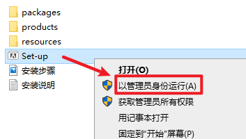 2.打开解压好的文件夹,选中“Setup”选择“以管理员身份运行”