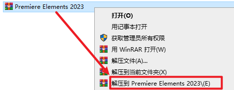 1.选中下载的安装包,右键选择“解压到 Premiere Elements 2023”