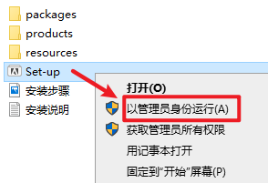 2.打开解压好的文件夹,选中“Setup”右键选择“以管理员身份运行”